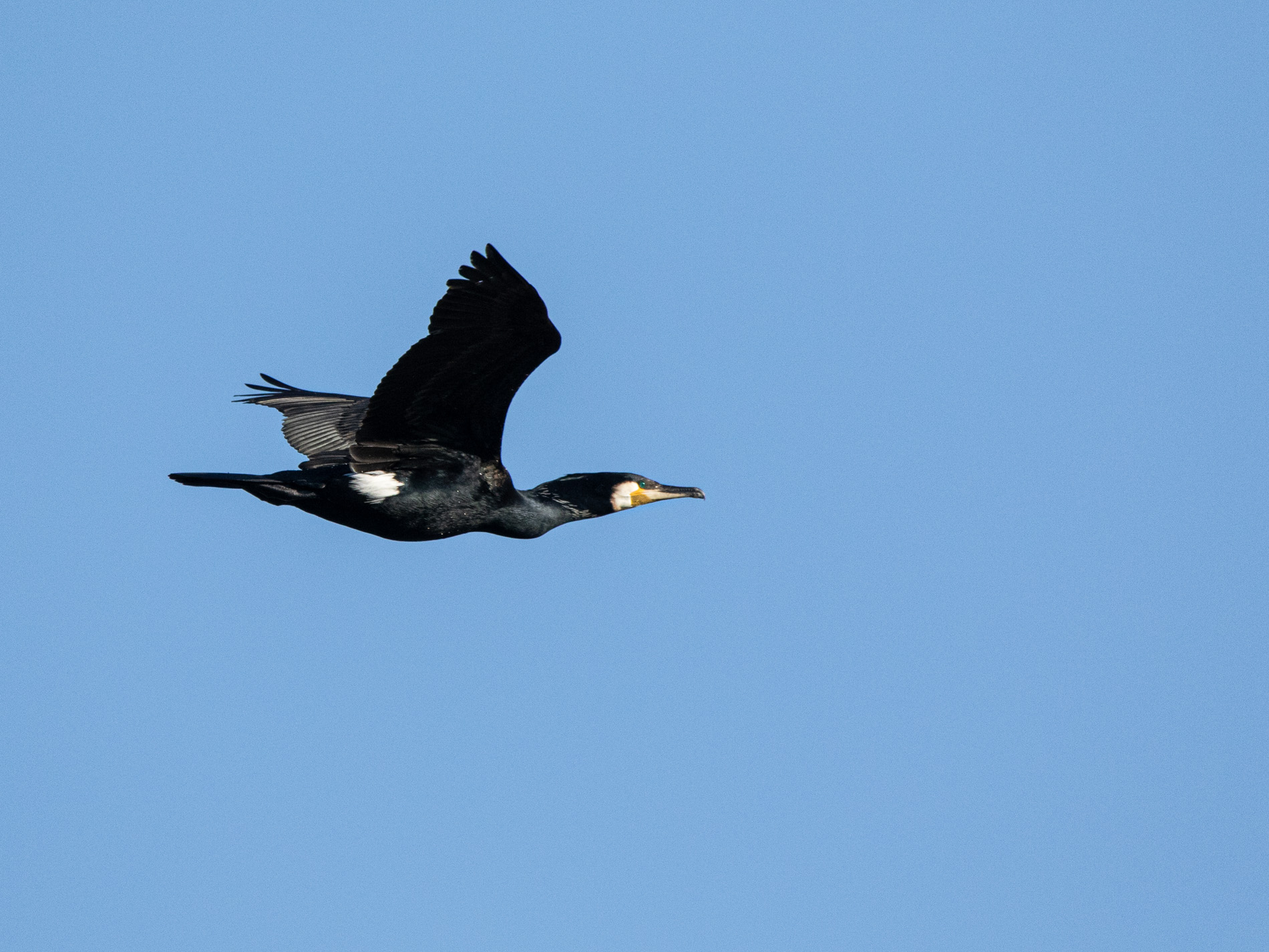 Kormoran (Phalacrocorax carbo) an der Huntebrücke beim Schaferhof, mehrere überfliegend [April22]