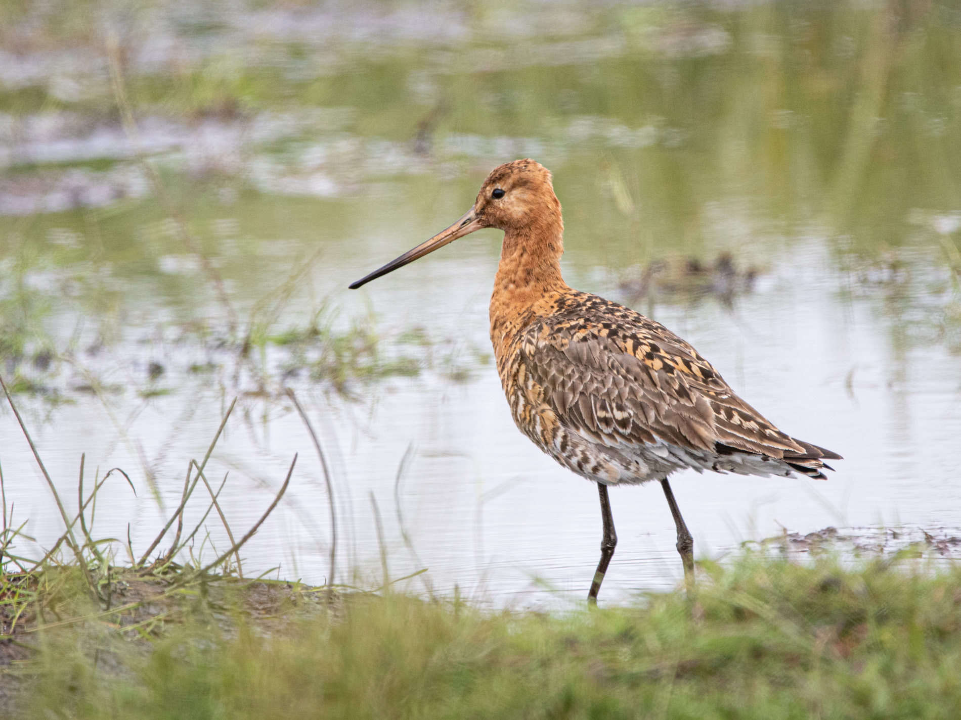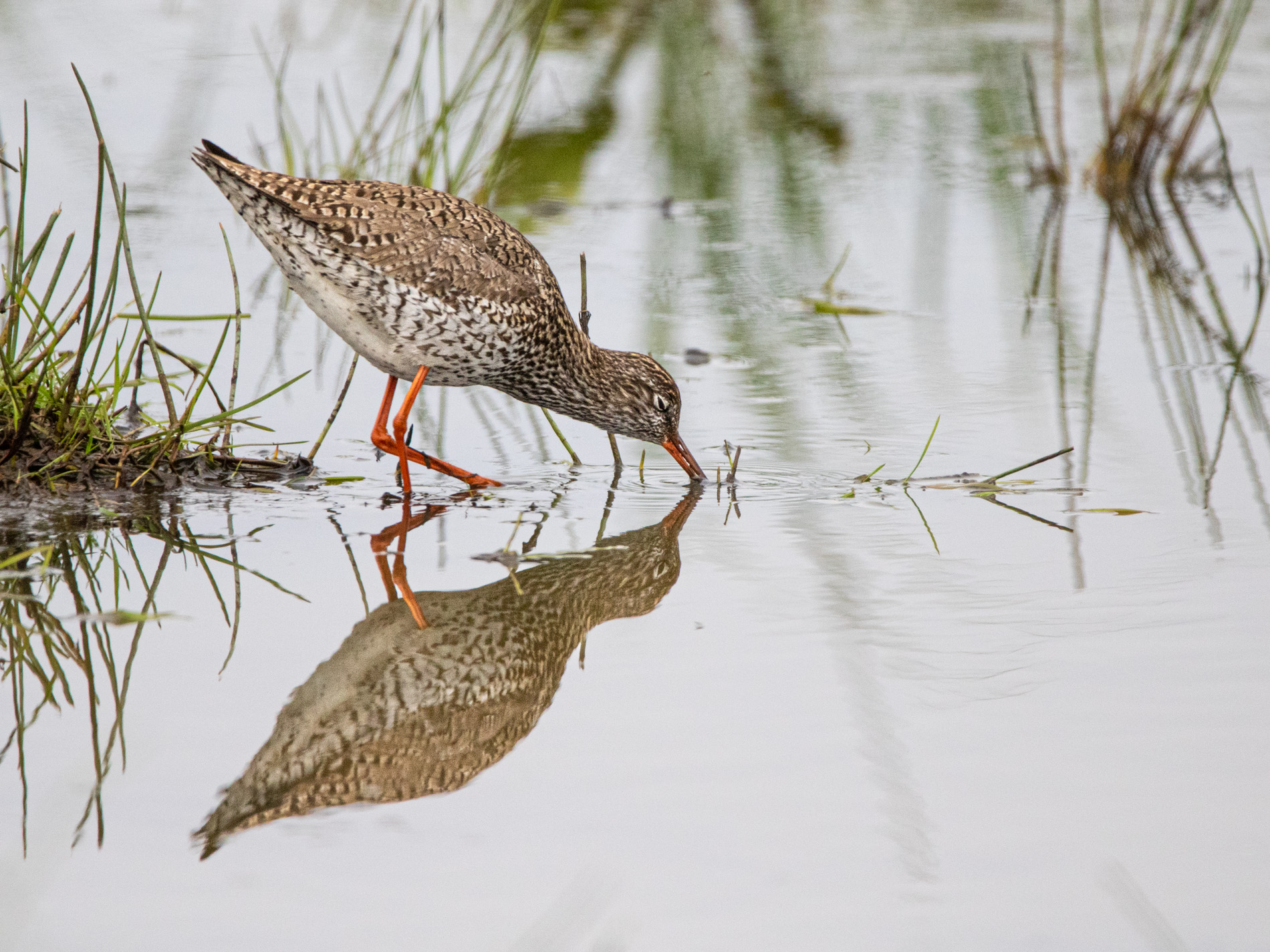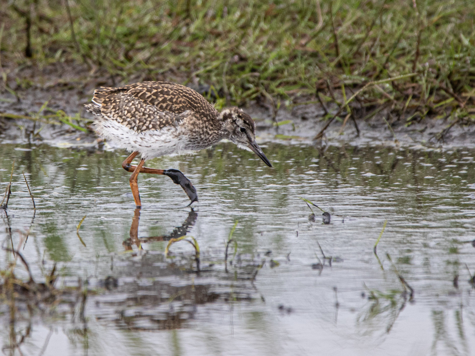 Rotschenkel (Tringa totanus) in einer teilweise überschwemmten Feuchtwiese