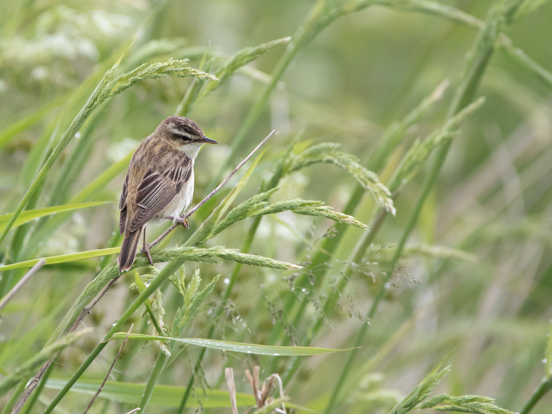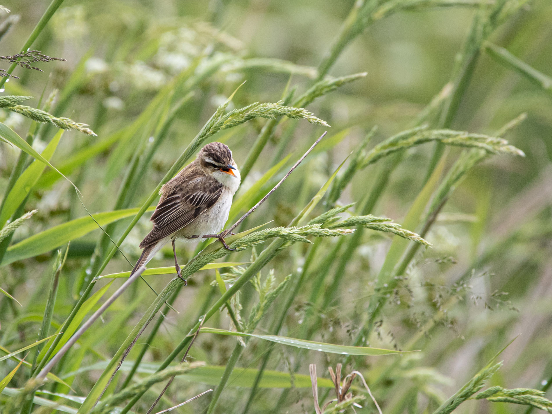 Schilfrohrsänger (Acrocephalus schoenobaenus) recht häufig singend in der Vegetation entlang der kleinen Entwässerumgsgräben [Frühsommer22], Sumpfrohrsänger (Acrocephalus palustris) singend im Röhricht entlang der der Hunte , auch Teichrohrsänger (Acrocephalus scirpaceus) sicherlich anwesend, aber keine singenden im Frühsommer22 beobachtet