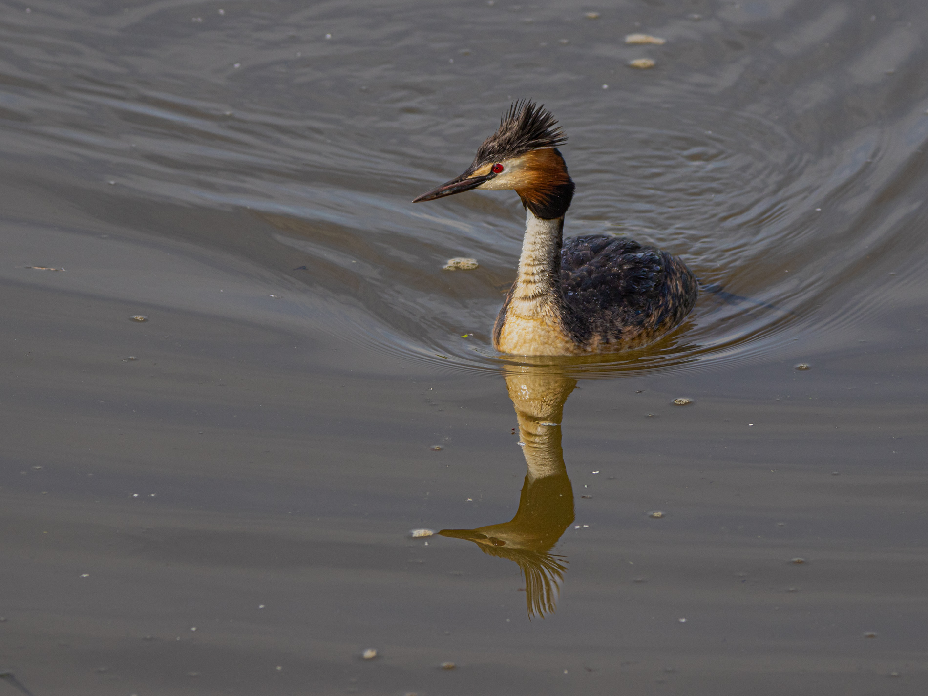 Zwergtaucher (Tachybaptus ruficollis) 1x auf einem größeren Kanal, 1x mit seinen „winzigen“ Jungen auf einen schmalen Kanal mit viele Deckung im Bereich des Bruchwalds (nahe des  Beoabachtungsturms) [Frühsommer22]; Haubentaucher (Podiceps cristatus) auf der Hunte und größeren Kanälen [Frühsommer22]