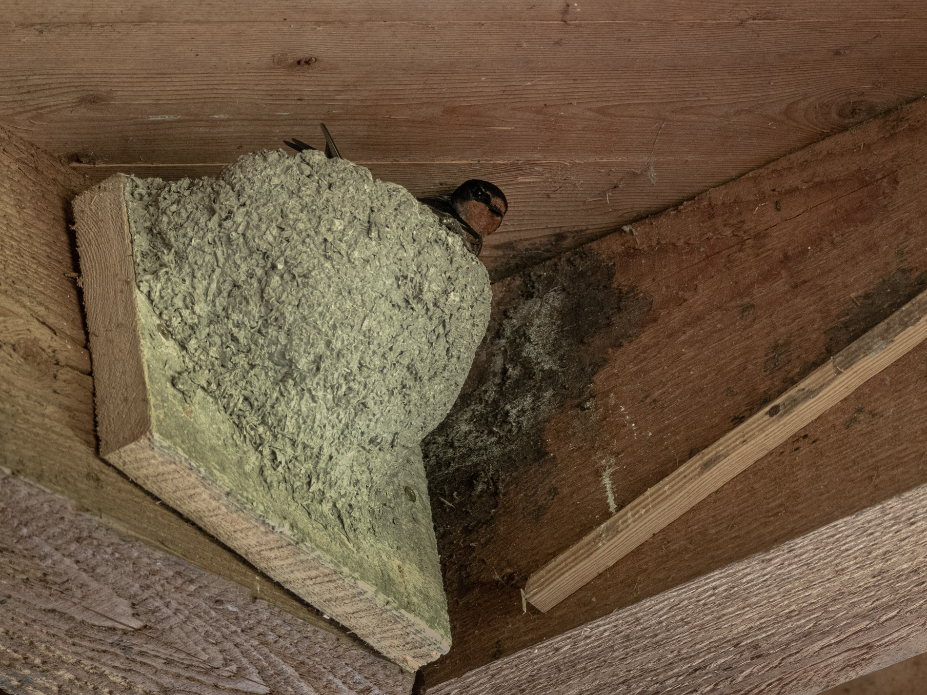 Rauchschwalben (Hirundo rustica) öfters überfliegend, brüten u.a. im Beobachtungsturm