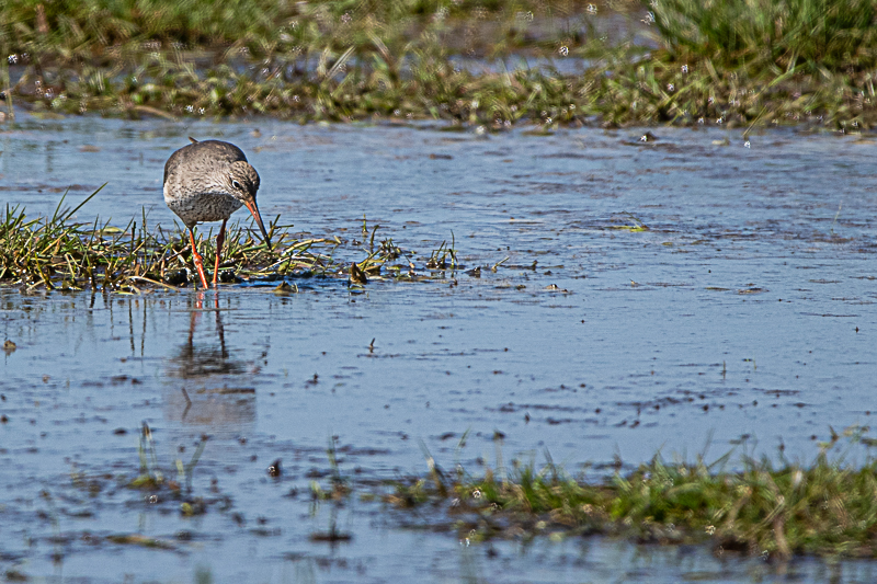 Rotschenkel (Tringa totanus) in einer teilweise überschwemmten Feuchtwiese