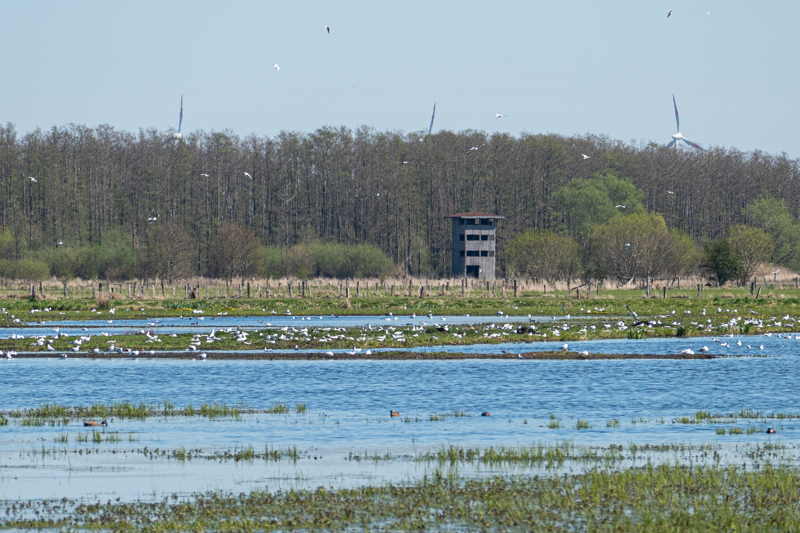 Lachmöwen (Chroicocephalus ridibundus) zahlreich an den größeren (flachen) Gewässern innerhalb der Feuchtwiesen, dort auch Bruten; eine Sturmöwe (Larus canus) überfliegend im Frühsommer22; Trauerseeschwalbe (Chlidonias niger) wenige auf Beuteflug über der Hunte im Frühsommer22