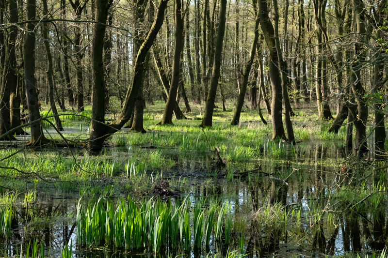 Im Osten des Ochsenmoores ist ein Bruchwald erhalten.