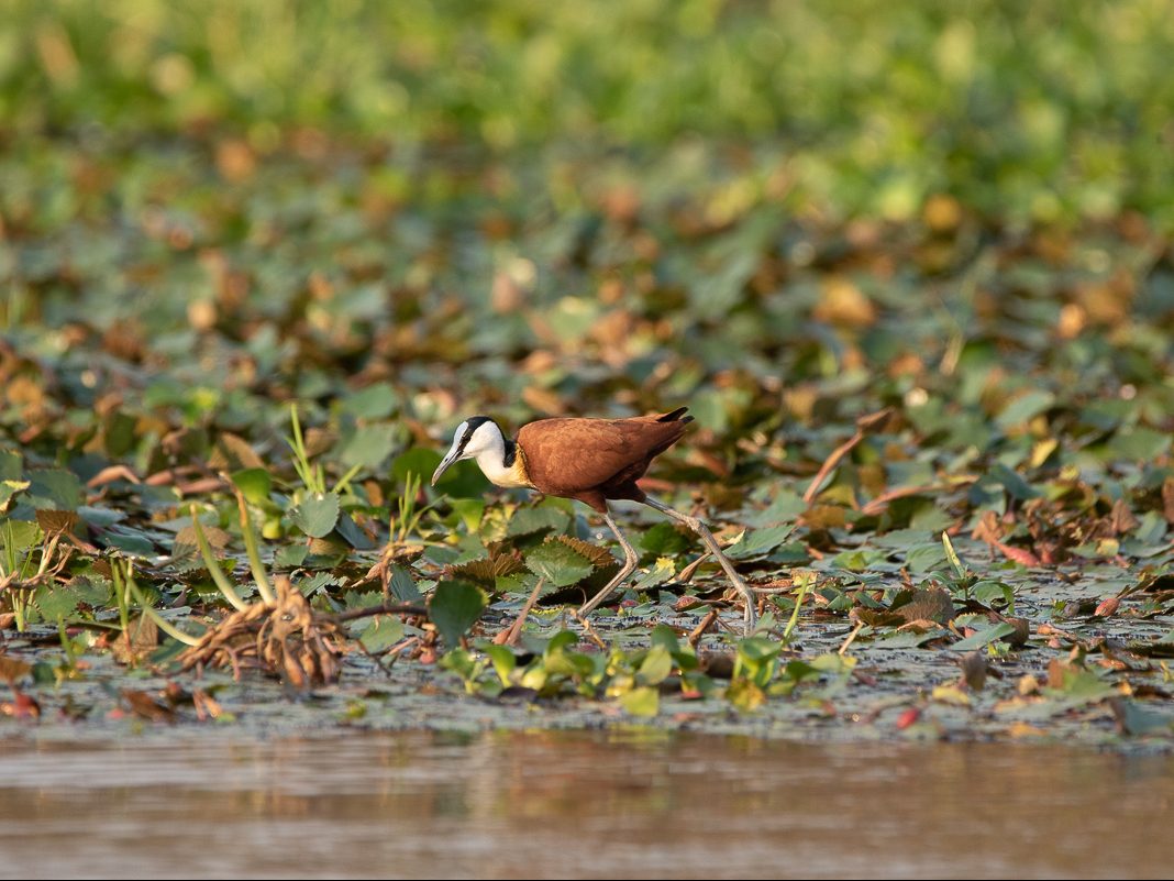 Spornkiebitz (Vanellus spinosus) – oft introckenen Bereichen, aber nicht weit entfernt vom Wasser; Goldschnepfe (Rostratula benghalensis) – Gewässernähe, nur eine Sichtung; Blaustirn-Blatthühnchen (Actophilornis africana) – läuft mit großen Füßen über Schmimmblätter