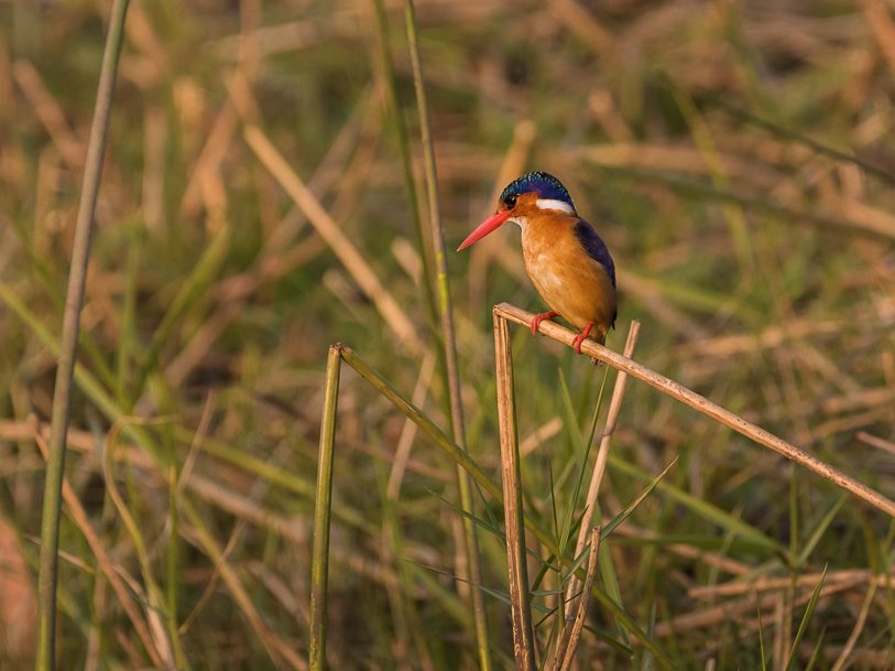 Haubenzwergfischer (Corythornis cristatus) – Ansitz oft im Schilf auf umgeknickten Halmen; Riesenfischer (Megaceryle maxima) – auf Bäumen und Büschen (mit dickeren Ästen) in Ufernähe; Graufischer (Ceryle rudis rudis) – oft gesellig auf Büschen und kleinen Bäume am Ufer, jagen rüttelnd über der offenen Wasseroberfläche; Beschreibungen weiterer Eisvögel, die nicht so sehr an Gewässser gebunden sind, in der Vogelliste