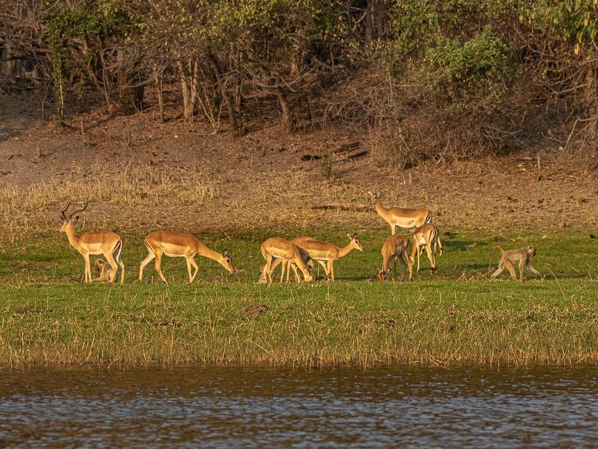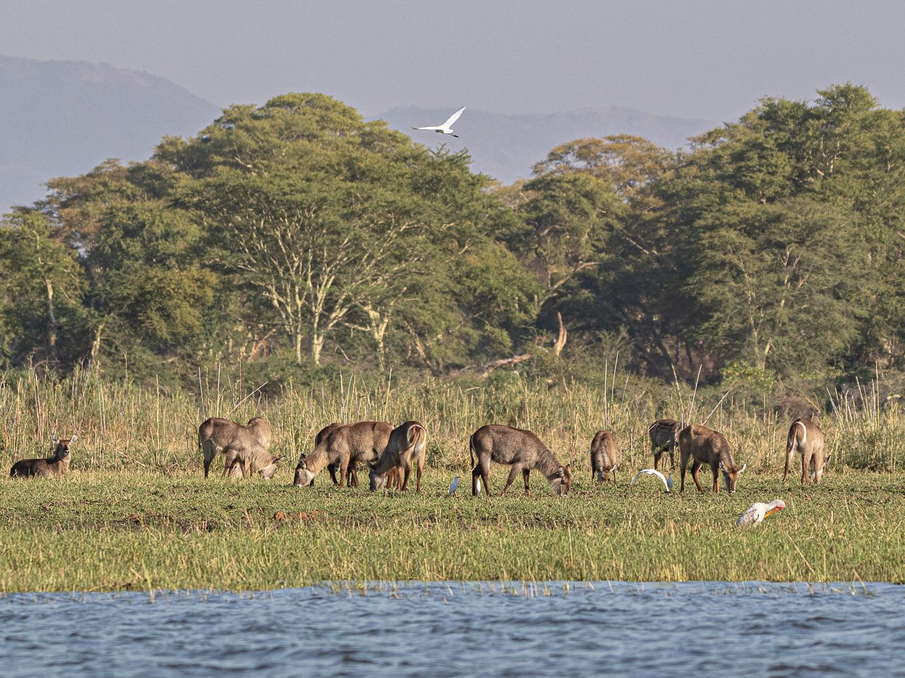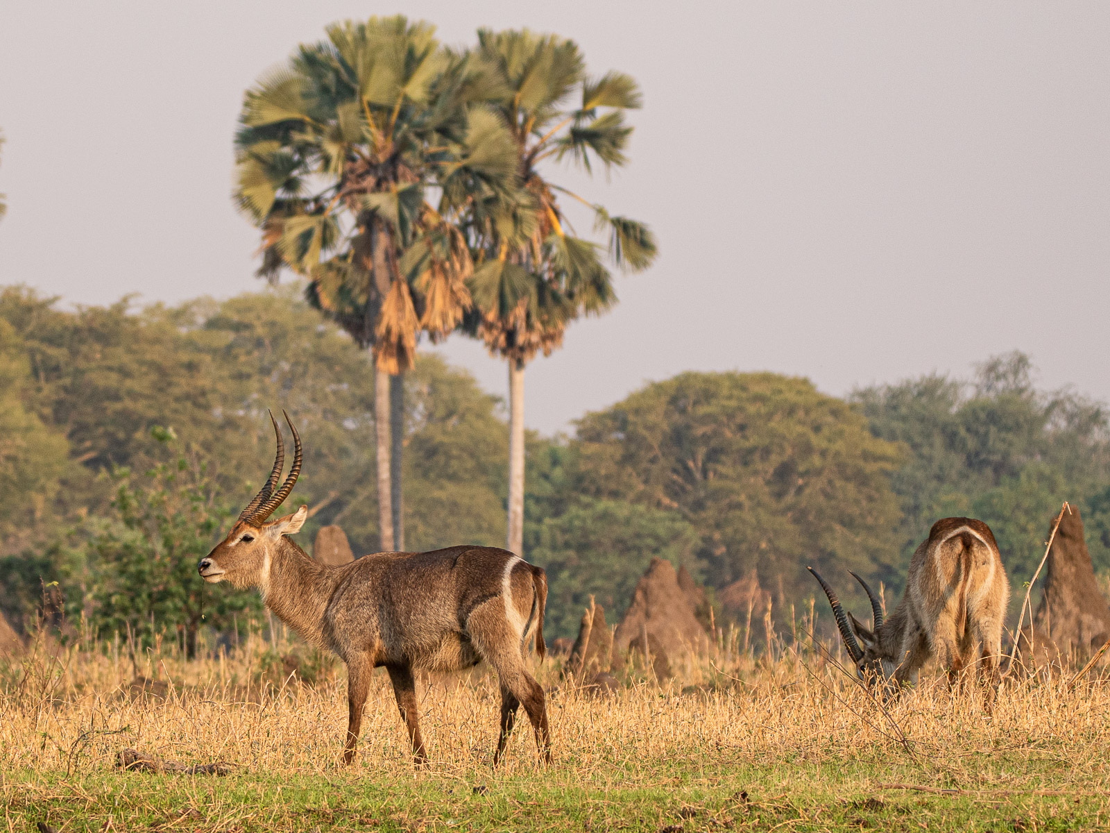 Weitere Antilopenarten und auch Zebras und Büffel kommen sicherlich auch ab und zu zum Flussufer, um dort zu trinken und zu grasen, vornehmlich dann, wenn andere Bereiche des Park wäheren der Trockenzeit ausgedörrt sind.