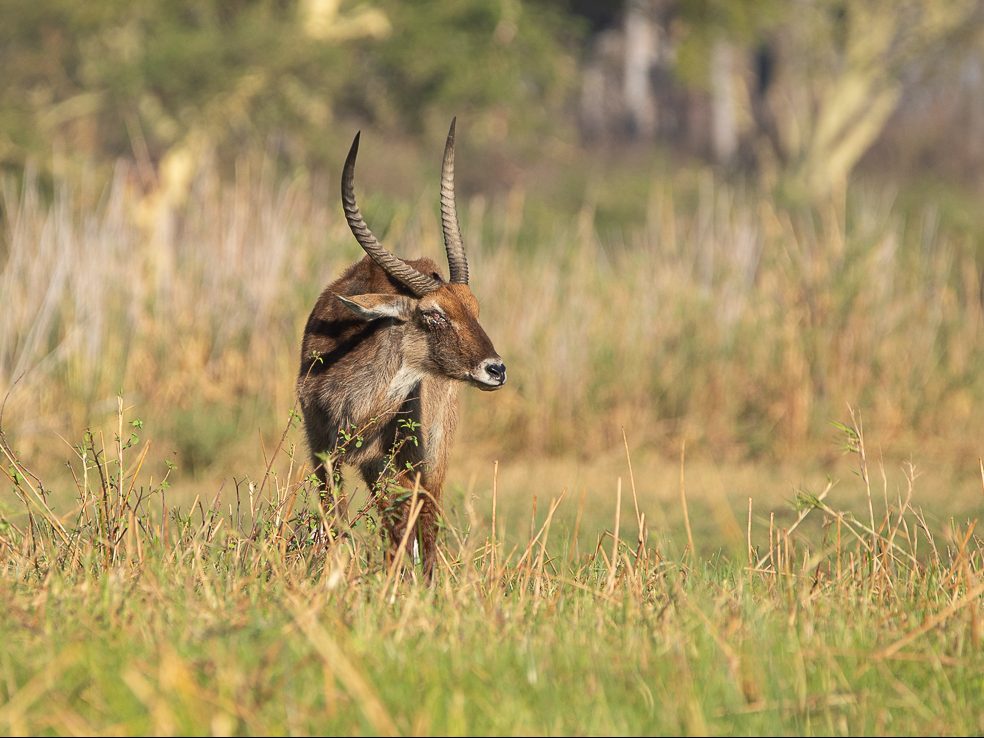 Ellipsen-Wasserbock (Kobus ellipsiprymnus) – charakteristische Art für den bewaldeten Uferbereich
