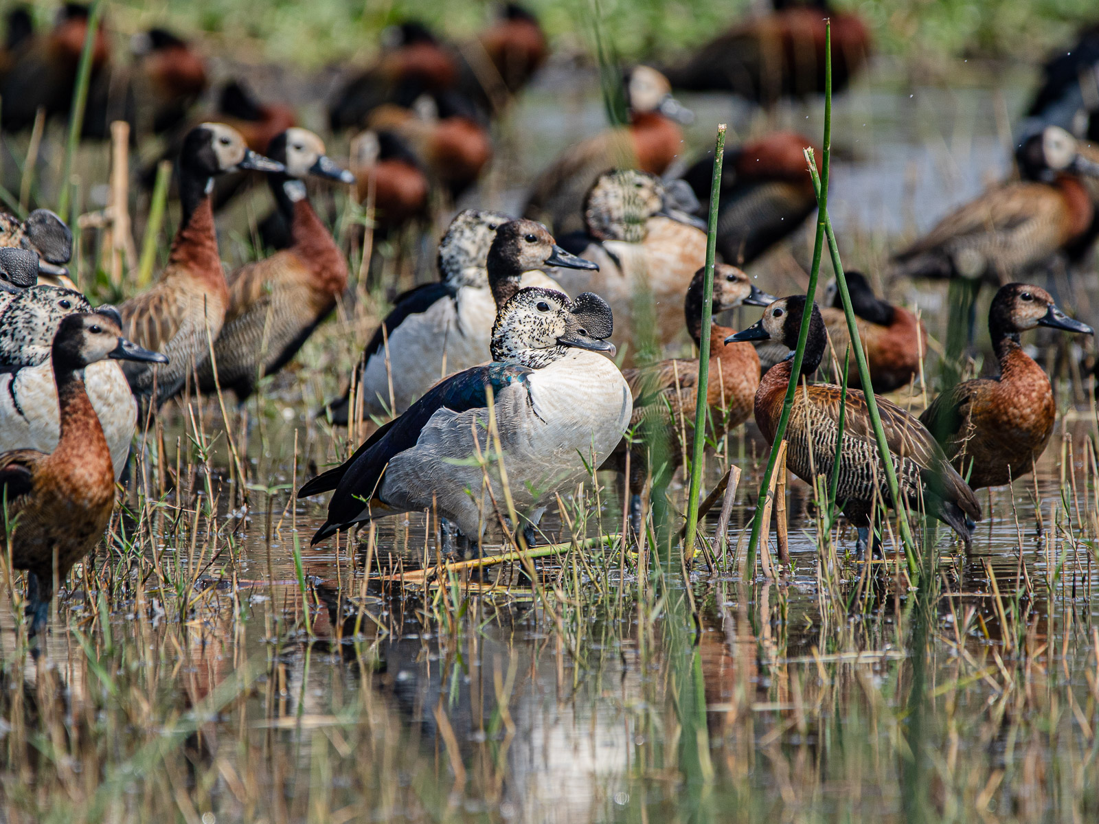 Nilgans (Alopochen aegyptiacus) – oft am Ufer auf Termitenhügeln oder Treibholz sitzend; Witwenpfeifgans (Dendrocygna viduata) – größere Gruppen am flachen Ufer oder grasbewachsenen Sandbänken; Sporngans (Plectropterus gambensis) – größere Gruppen am flachen Ufer, oft überfliegend; Glanzente (Sarkidiornis melanotos) – oft mit Witwenpfeifgänsen vergesellschaftet