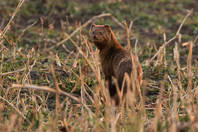 Die Sumpfmanguste (Atilax paludinosus) [engl. Marsh mongoose] hat eine Körperlänge von bis zu 1 Meter, wobei fast die Hälfte auf den buschigen Schwanz entfällt. Das Fell ist braun bis schwarz, machmal schimmert es rötlich. Diese Art ist fast in ganz Subsahara-Afrika weit verbreitet, meidet nur sehr trockene Gegenden. Meist findet man sie in der Nähe von Gewässern, die Tiere können gut schwimmen und haben Schwimmhäute zwischen den Zehen. Wir konnten eine Sumpfmanguste im Liwonde National Park beobachten.