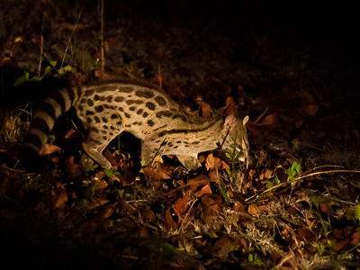 Die Angola-Ginsterkatze (Genetta angolensis) [engl. Angolan genet / miombo genet] gehört systematisch zu Familie der Schleichkatzen (Viverridae) und hat in etwa die Größer einer schlanken Hauskatze. Auch ist vornehmlich nachtaktiv. Sie kommt in Malawi wohl nur in der Gegend um den Liwonde National Park und bewohnt trockenen Wälder (Miombo, Mopane) und Baumsavannen.