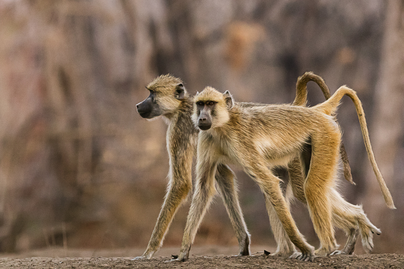 Steppenpaviane (Papio cynocephalus) [engl. yellow baboon] (60 bis 80 cm) sind im östlichen und südlichen Afrika weit verbreitet und leben nicht – wie der dt. Name vermuten lasst – ausschließlich in Savannengebieten. Wie sahen die Tiere in den trockenen Mopanewäldern und oft am Ufer des Shire-Flusses im Liwonde National Park. Auch in den Bergwäldern auf dem Zomba Plateau hatten wir eine Sichtung.