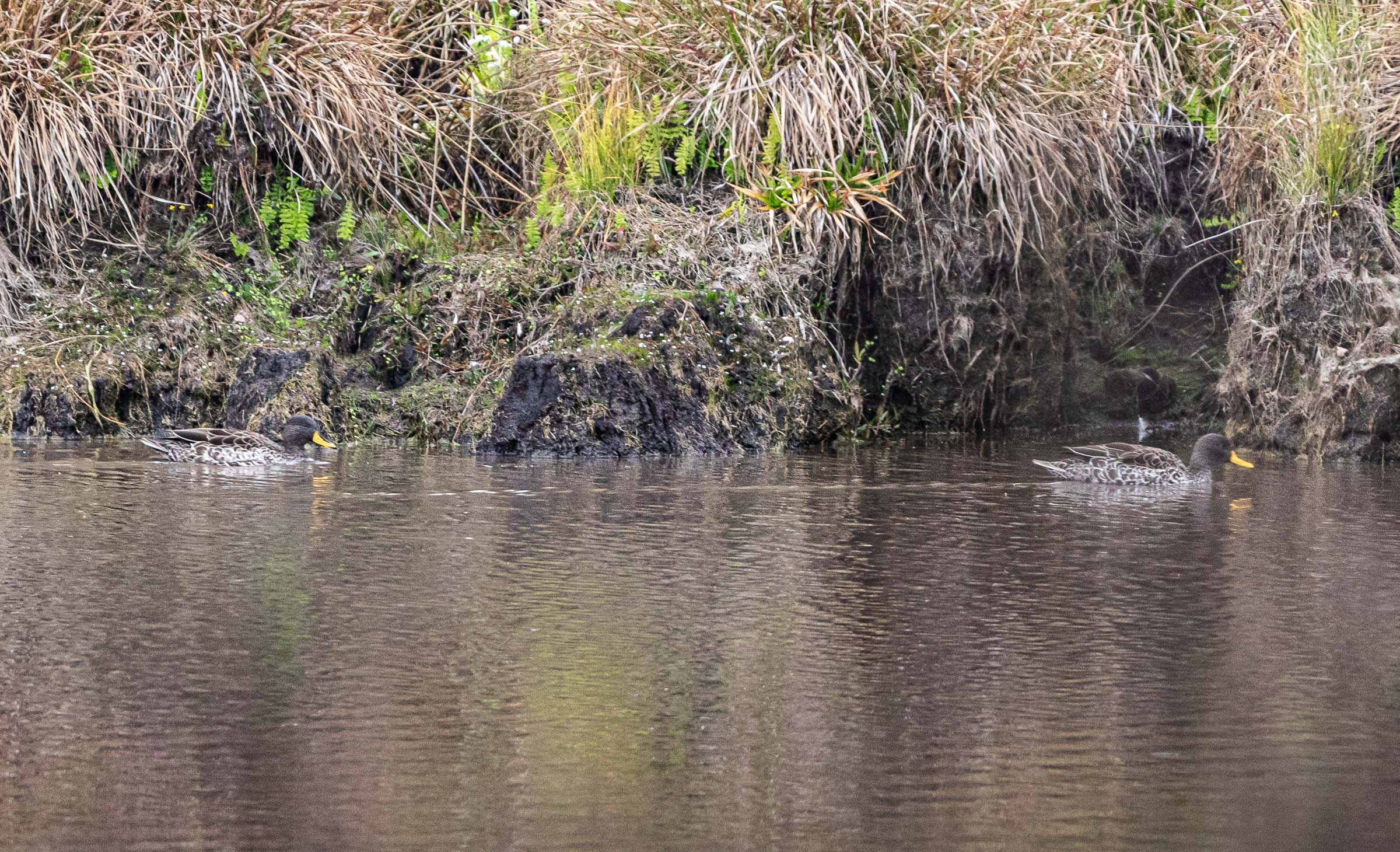 Gelbschnabelenten (Anas undulata) [engl. Yellow-billed Duck] sind im südlichen Afrika weit verbreitet. Sie bewohnen allerlei Stillgewässer und langsam fließende Flüsse, auch brackische Lagunen und Deltas. Man findet sich teilweise noch in großen Höhen.