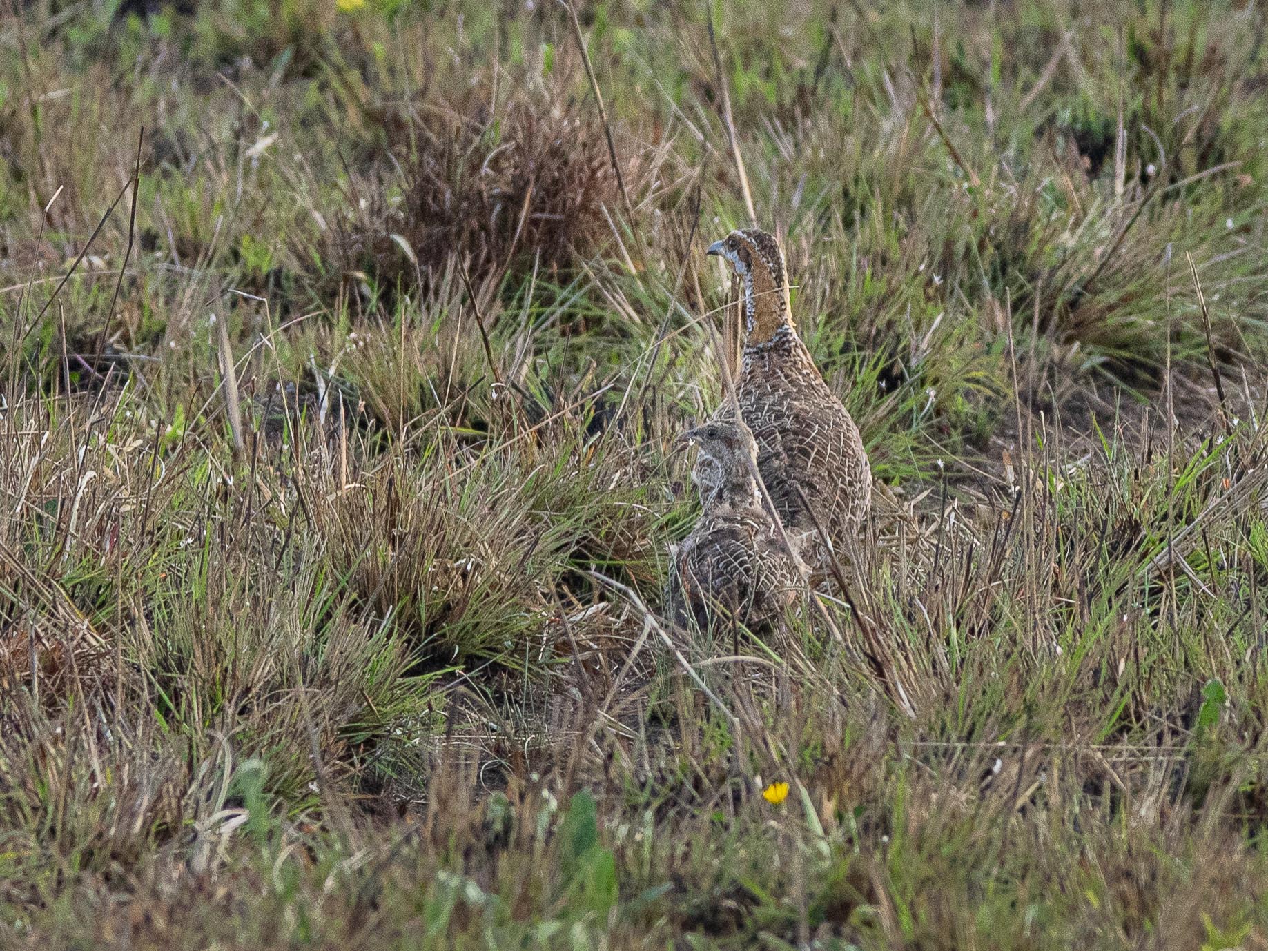 Rotflügelfrankoline (Scleroptila levaillantii) [engl. Red-winged Francolin] (30 bis 40 cm) sind durch ihr Gefieder recht gut getarnt. Man kann diese Vögel in Malawi nur in den Grasländern des Nyika National Parks beobachten. Sie halten sich das ganze Jahr dort auf. Zu unserer Reisezeit führten die Vögel teilweise Junge.