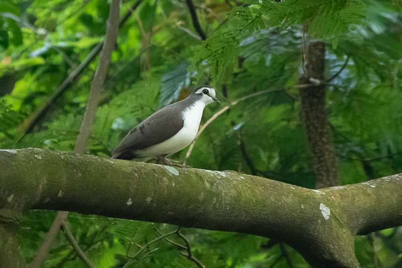 Die Tamburintaube (Turtur tympanistria) [engl. Tambourine Wood-dove] ist eine weitere kleine (20-22 cm) afrikanische Buschtaube (= Gattung Turtur). Sie bewohnt diverse Waldbiotope, auch offenere Landschaften, hält sich aber meist versteckt in der Deckung auf. Bei Störung fliegt sie in der Regel schnell auf und flüchtet. Sie hat einige Flecken auf den Flügel. An ihrer hellen Unterseite, die im Kontrast zur dunklen Oberseite steht, ist sie gut zu identifizieren. Wir hatten eine schöne Beobachtung in einem Wald am Fuße des Zomba-Massivs.
