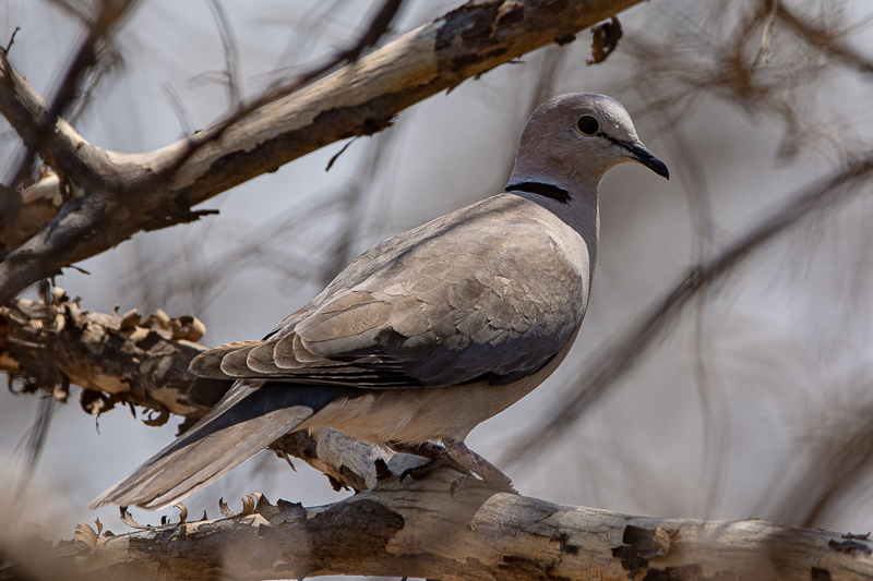 Die Gurrtaube (Streptopelia capicola) [engl. Ring-necked Dove] (25-27 cm) ist im östlichen und südlichen Afrika weit verbreitet und bewohnt offenes Buschland. Sie ist ein Kulturfolger und oft in der Nähe von Siedlungen zu sehen. Sie meidet anscheinend das höhere Bergland, denn im Nyikagebiet konnten wir sie nicht nachweisen.
