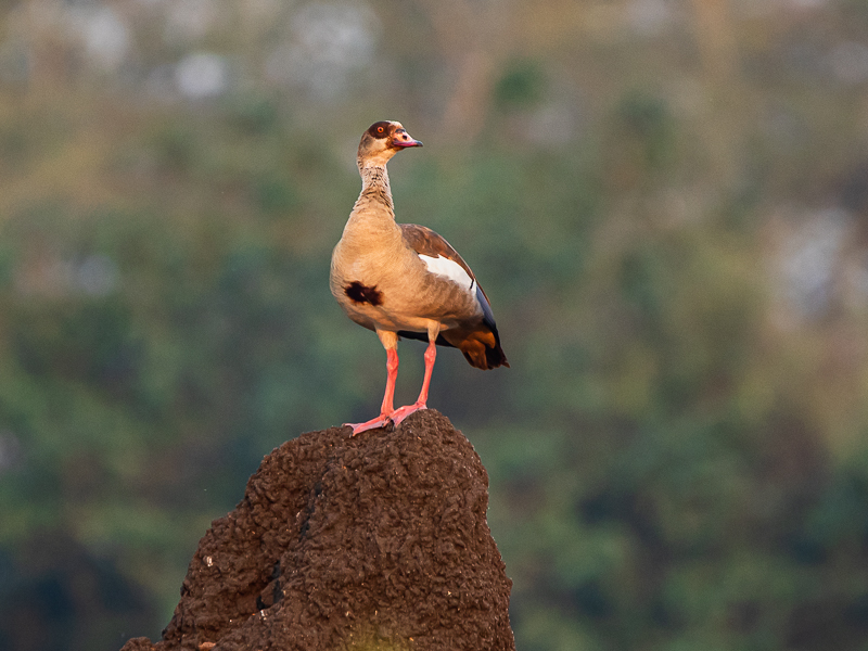 Die Nilgans (Alopochen aegyptiacus) [engl. Egyptian Goose] ist eine der häufigsten Entenarten Afrikas (südlich der Sahara) und sowohl in Nordamerika und Europa eingebürgert. Man findet sie an größeren Gewässern aller Art, so auch am Shire-Fluss im Liwonde National Park.