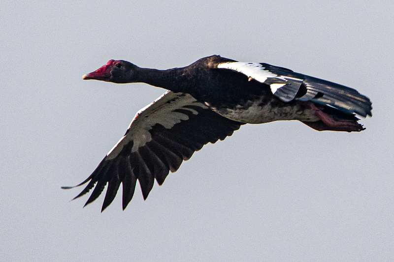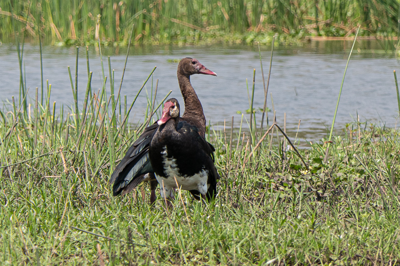 Die Sporngans (Plectropterus gambensis) [Spur-winged Goose] ist an den größeren Gewässern in Afrika südlich der Sahara weit verbreitet, z.B. am Shire im Liwonde National Park.