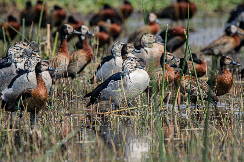 Die Witwenpfeifgans (Dendrocygna viduata) [engl. White-faced Whistling-Duck] ist eine in Afrika südlich der Sahara weit verbreitete Art, die man an vielen Gewässern beobachten kann, vornehmlich an großeren Seen oder Flüssen.