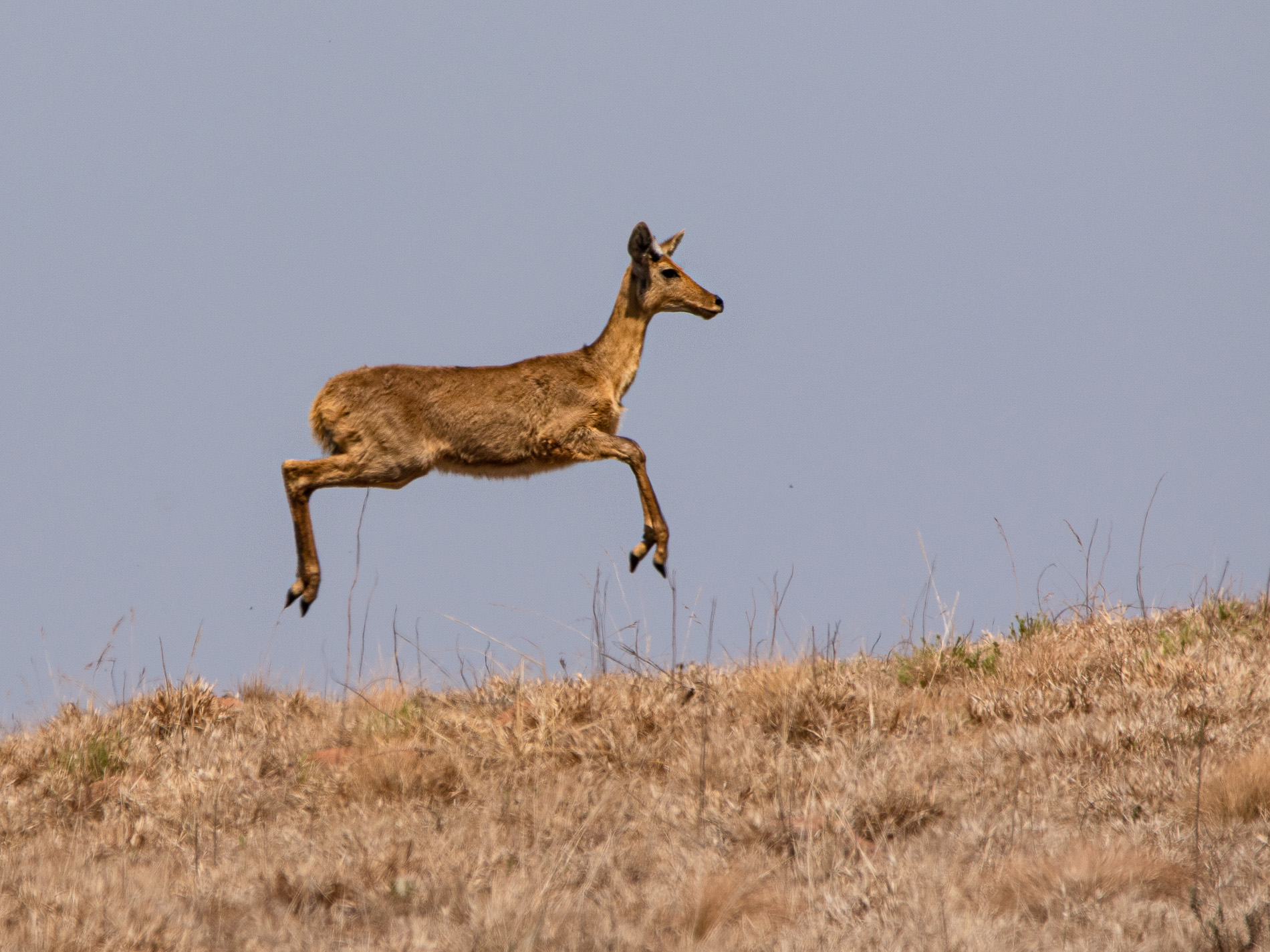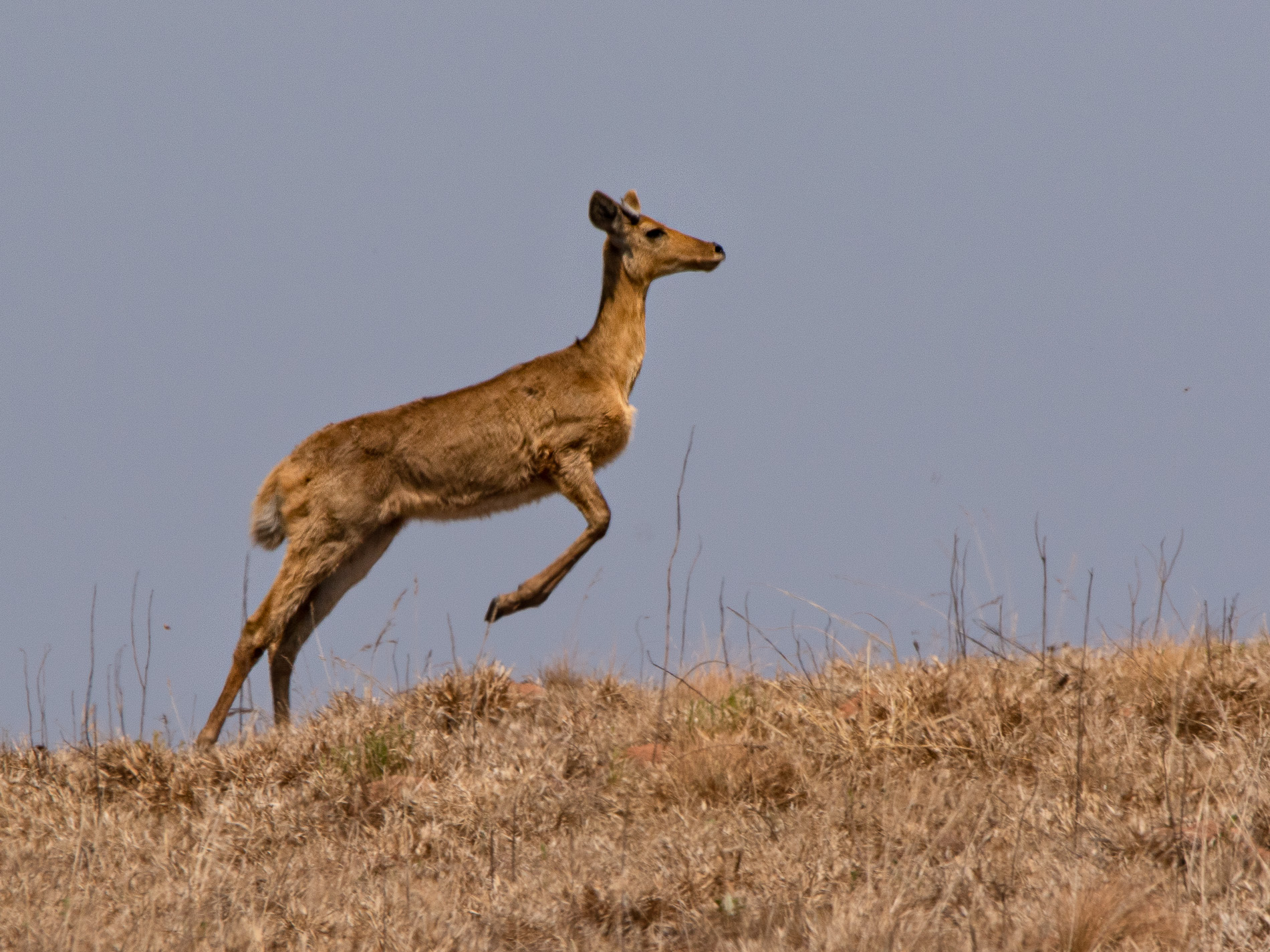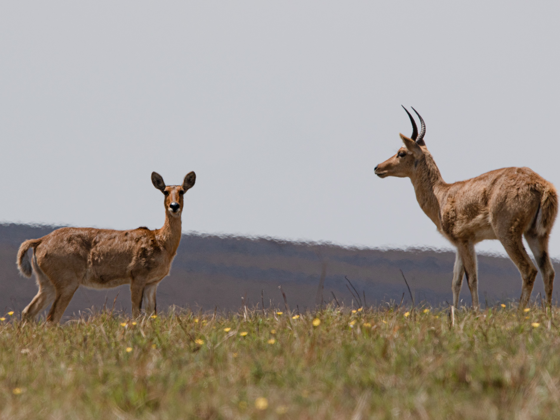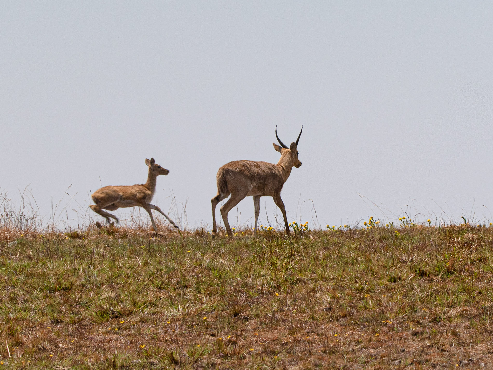 Die recht zierlichen Großriedböcke (Redunca arundinum) (etwa wie ein Reh) sind typische Bewohner der offenen Grasflächen ohne jeglichen Baumbewuchts. Da ihr Lebensraum keinerlei Deckung bietet, können sie mit großer Geschwindigkeit fliehen, wobei sie oft große Springe vollführen.