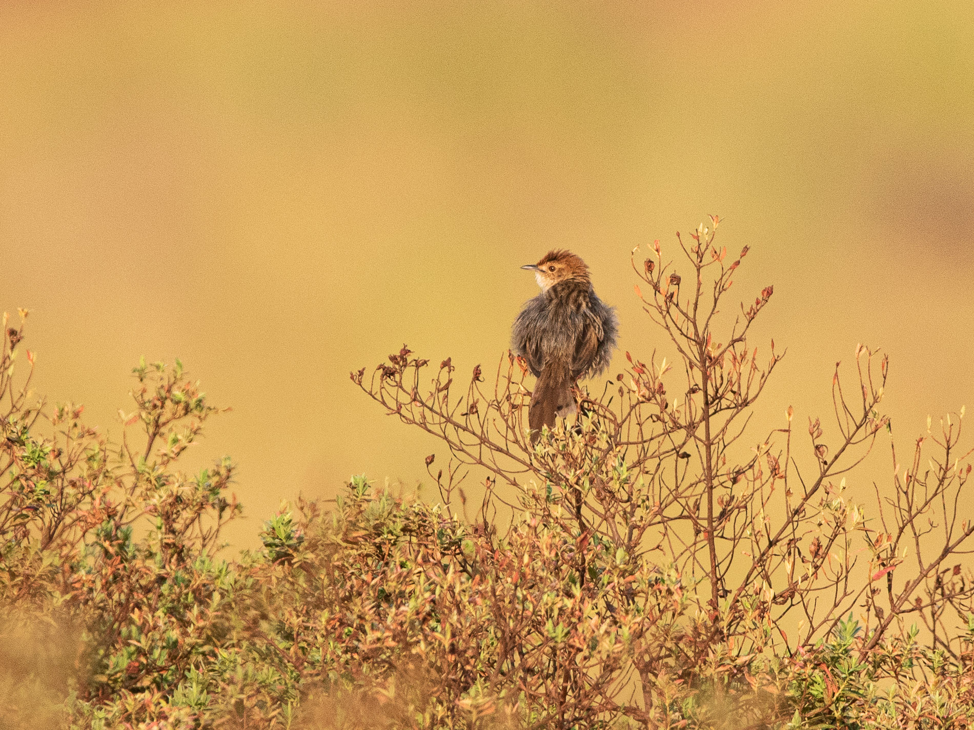 Überwiegend in Gebieten mit etwas Buschwerk oder Bäumen hatten wir folgende Sichtungen:  Geierrabe (VL4), Njombezistensänger (Cisticola njombe mariae) (VL5), Zimtbuschsänger (Bradypterus cinnamomeus nyassae),  Senegalbrillenvogel (Zosterops senegalensis) (VL5) , Stahlschwalbe (Hirundo atrocaerulea)(VL5), Baglafechtweber (VL7), Kaprötel (VL6), Hartlaubschnäpper (VL6), Bergdrongoschnäpper (VL6), Reichenowweber (VL7), Whytigirlitz (VL7).