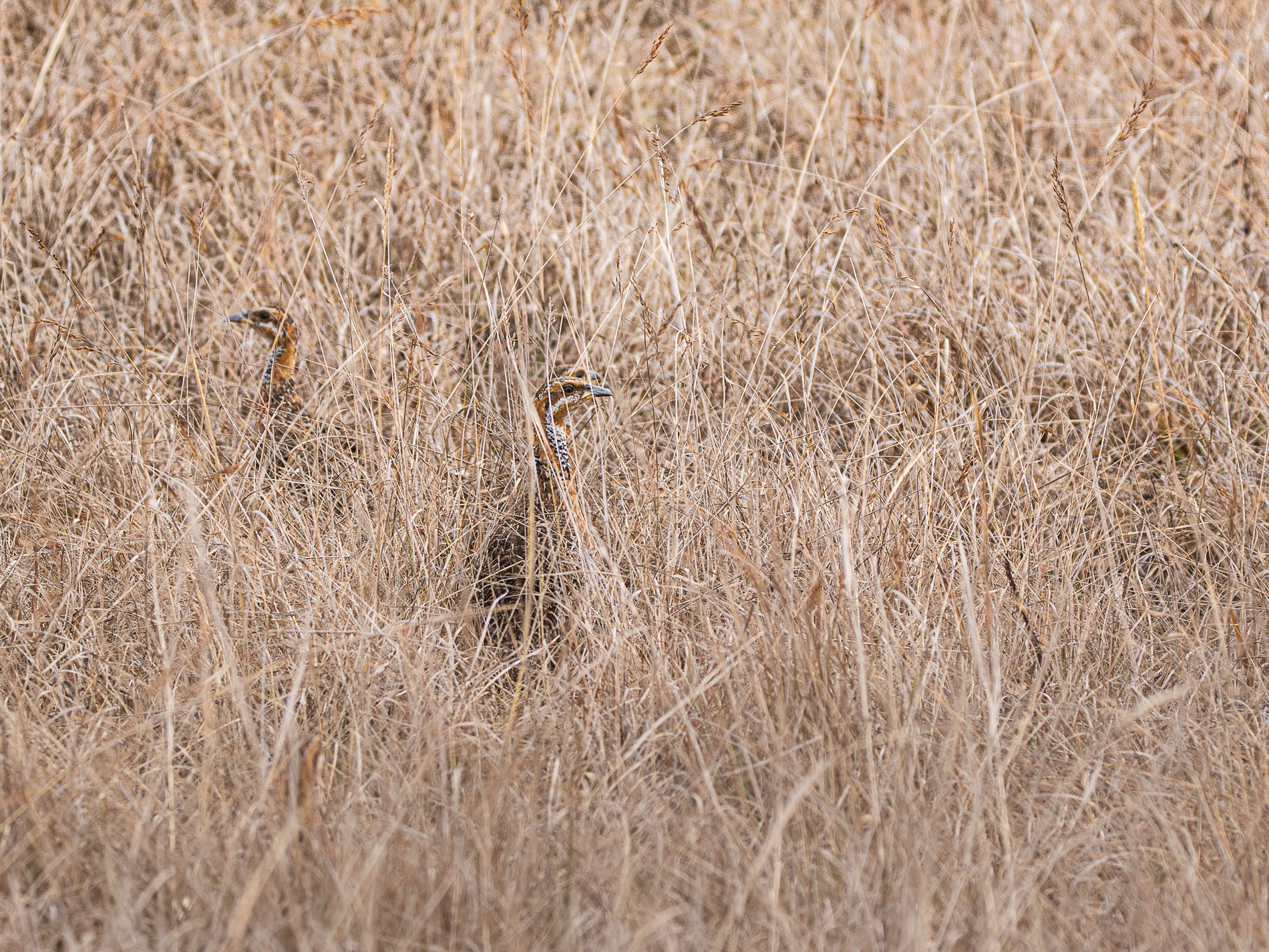 Rotflügelfrankoline (Scleroptila levaillantii) (VL1) halten sich gerne zwischen den etwas höheren Grashalmen auf.