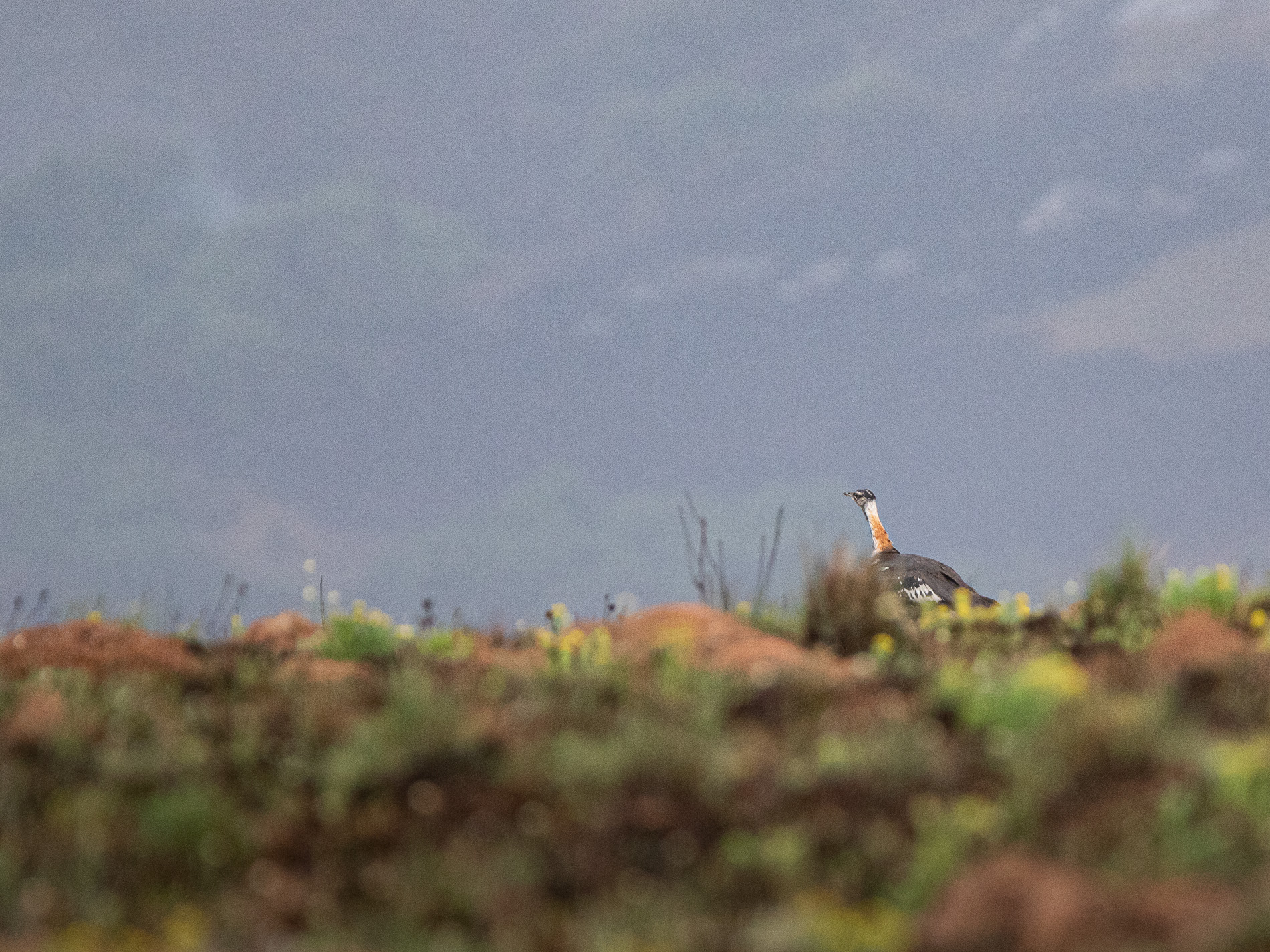 Die „Jackson-Trappe“ (Neotis denhami jacksoni, engl. Jacksons’s Bustard) (VL1) ist der größte Vogel, der uns im Grasland begegnete, leider auf große Entfernung. Die männlichen Tiere können bis 1 m lang werden und bis 10 kg schwer.