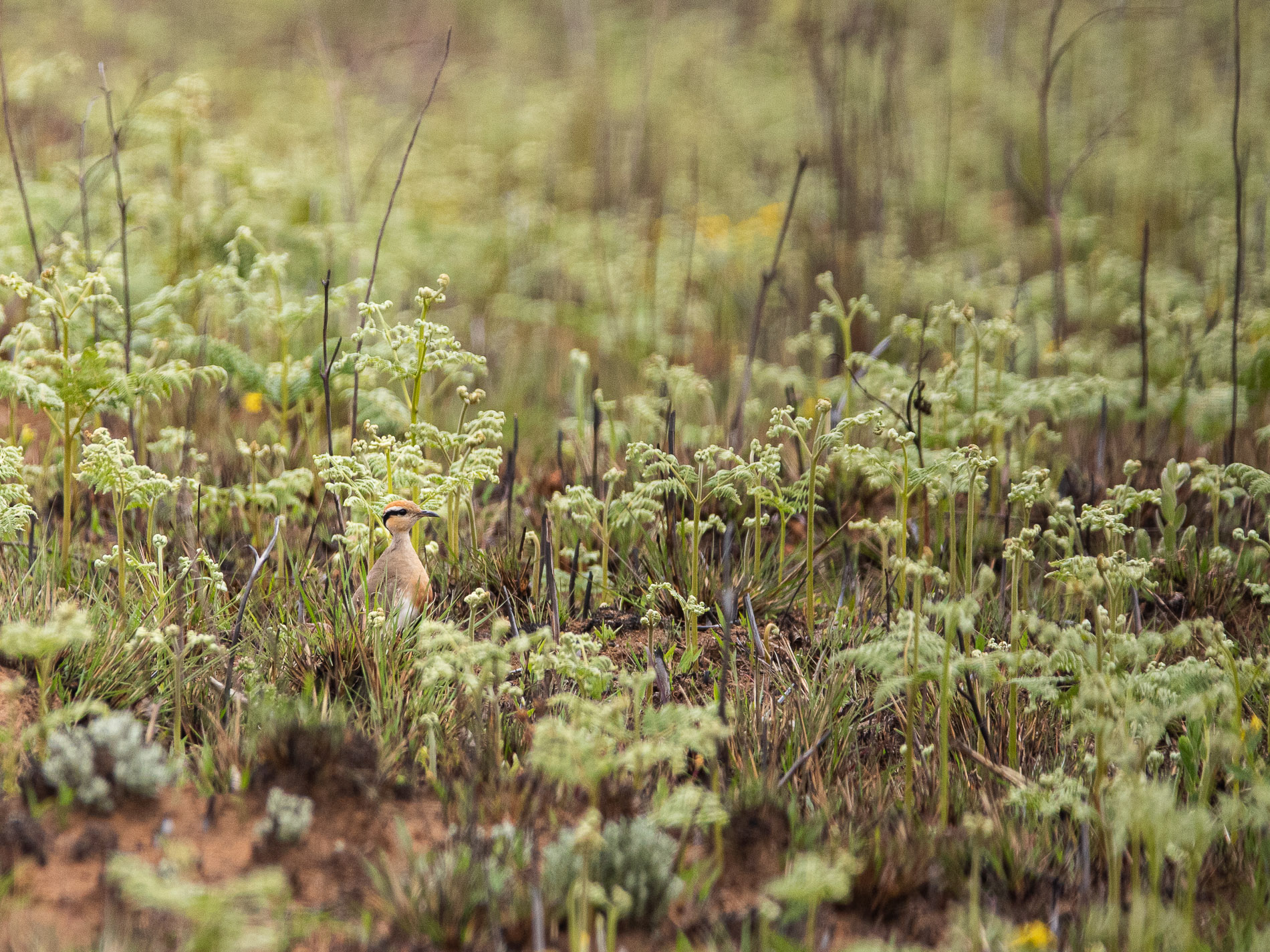 Der Temminckrennvogel (Cursorius temminckii) (VL2) ist ein unruhiger Geselle der offenen Landschaft. Bei seiner Suche nach Nahrung (vornehmlich im Boden lebende Termiten) ist er flink unterwegs, läuft schnell ein Stück und stoppt dann oft abrupt, pickt nach Beute und rennt weiter. Auch bei Gefahr macht er sich eher zu Fuß davon, als dass er auffliegt.